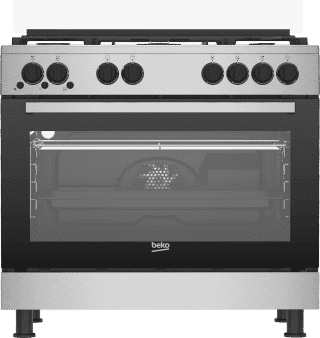 Cuisinière Beko 5 feux inox avec tourne broche 90×60 Minuterie