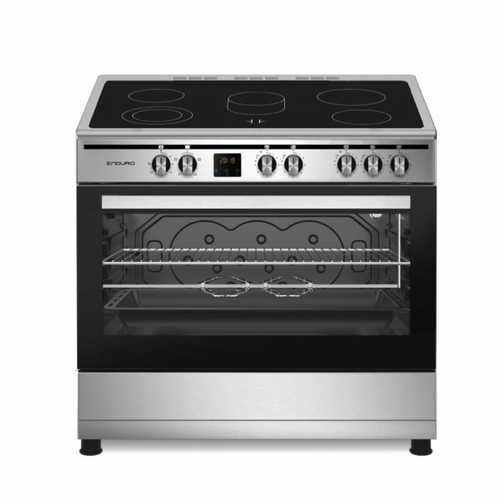 Cuisinière Enduro 5 Feux 90X60 Vitroceramique Electrique Gril Haut et Bas INOX